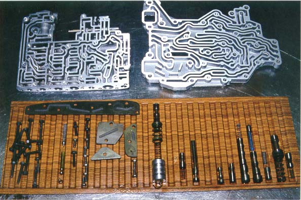 This photo basically shows the valve body after it has been completely stripped down and made ready for the machine work and valve body updates that are added to bring the unit up to scratch.