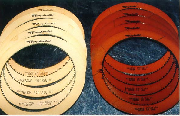 From left to right we have a brand new set of C6 standard frictions and on the right is the treated heavy duty set of frictions that are only used in the EXTREME transmissions.