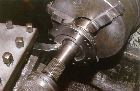 When machining the front pump surface the rear thrust surface must also be machined for perfect alignment, this must be done without removing the rear pump half from the lathe.