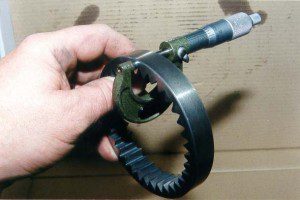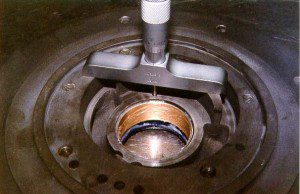 After cleaning the front pump half and installing the new pump bush and seal the depth of the gear crescent is measured and checked against pump gears.